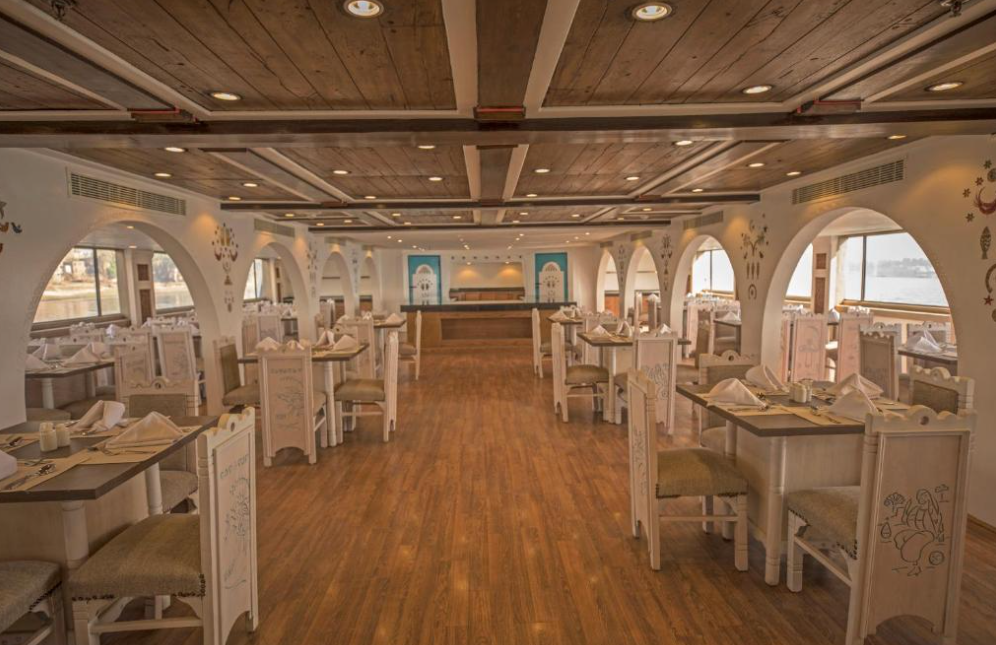 Every meal is thoughtfully prepared by a team of skilled chefs, combining the rich flavours of Egyptian cuisine with classic international favourites — all served against the backdrop of the gently flowing Nile.
