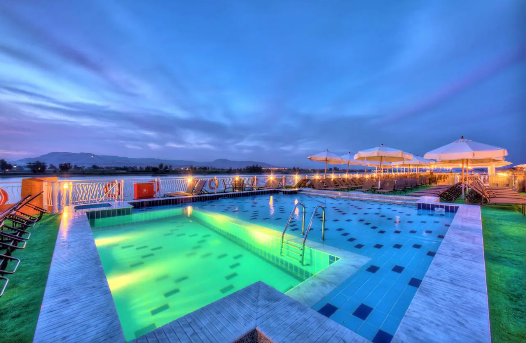 Experience the elegance of the Steigenberger Legacy, a 5-star deluxe Nile cruise ship that offers a harmonious blend of classic design and modern amenities. With 76 cabins spread across 5 decks, guests can enjoy panoramic views of the Nile, indulge in gourmet dining, and relax on the expansive sun deck equipped with a swimming pool and pool bar. The ship also features a fitness center, spa, and various entertainment options, ensuring a memorable journey through Egypt’s timeless landscapes.